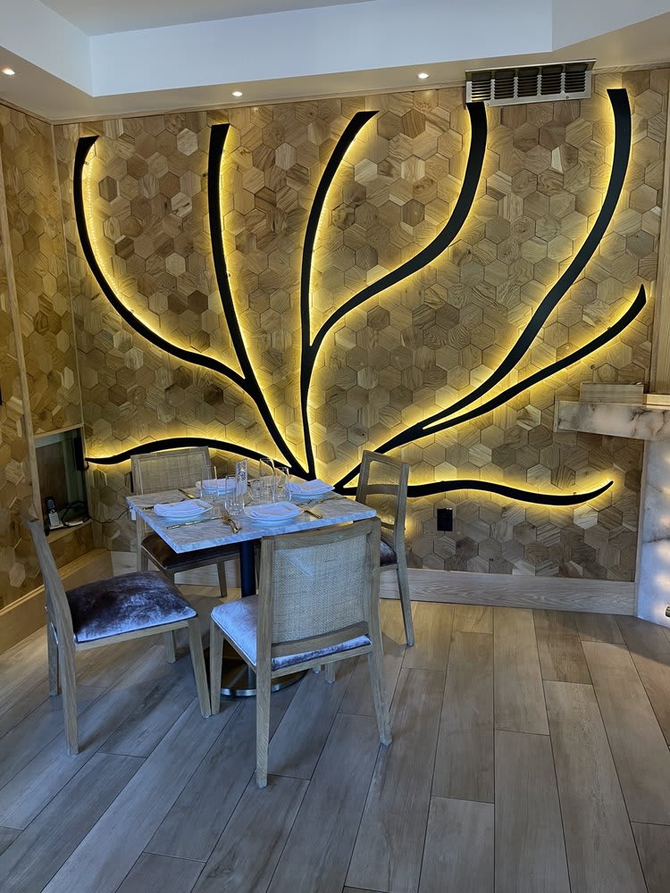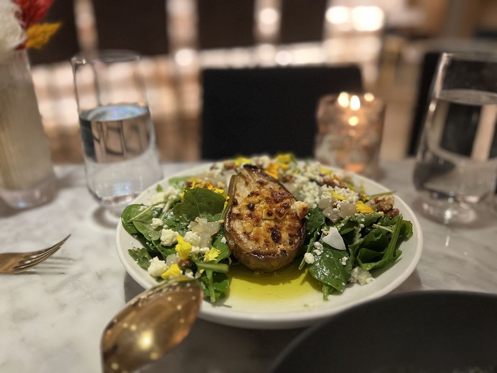 From the moment you step into Flowers Saratoga, the garden-inspired ambiance envelops you. The interior is designed to mimic a blooming garden, with floral arrangements, plant motifs, and a palette of greens and earth tones that bring the outdoors inside. The space is both elegant and comforting, setting the stage for a meal that's as visually appealing as it is delicious.